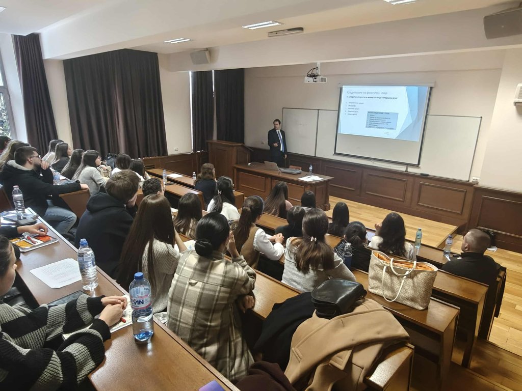 Срещата бе част от обучението по дисциплините „Въведение в банковото дело“ и „Банки и всеобщо финансово предлагане“ с титуляр проф. д-р Стефан Вачков. В атмосфера на активен диалог и интерес студентите се запознаха отблизо с практическите механизми на корпоративното кредитиране в България. Г-н Маламов запозна бъдещите финансисти с основните етапи при оценката и одобрението на кредитни експозиции, подходите при управление на кредитния риск, както и предизвикателствата при преструктурирането на проблемни кредити.
